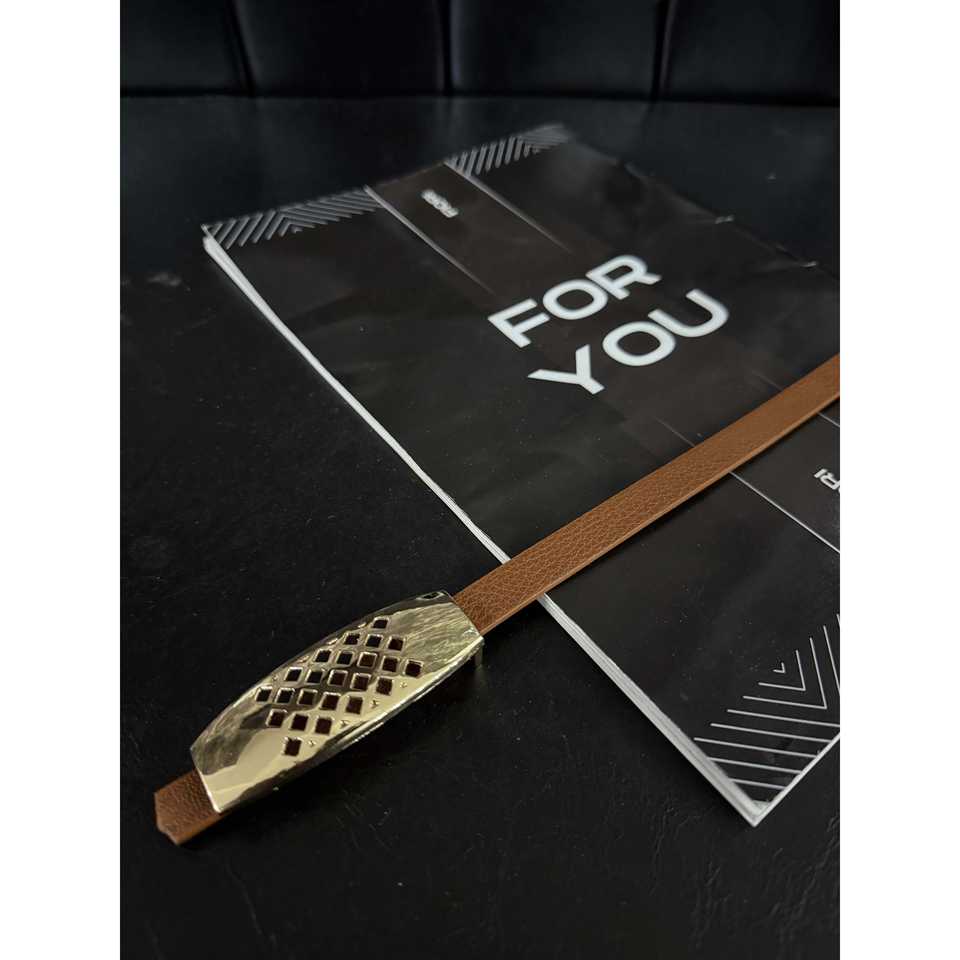 เข็มขัดดีไซน์เนอร์สำหรับผู้หญิง สไตล์ลำลอง หัวเข็มขัดโลหะผสม หนังสีน้ำตาล ผ้าลายหนัง