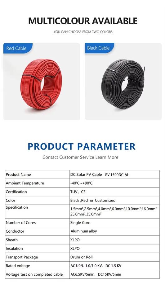 สายเคเบิล DC อลูมิเนียมอัลลอย XLPO PV 1500DC-AL 1x6mm2 สำหรับไมโครอินเวอร์เตอร์พลังงานแสงอาทิตย์ อายุการใช้งาน 25 ปี คุณภาพเยี่ยม