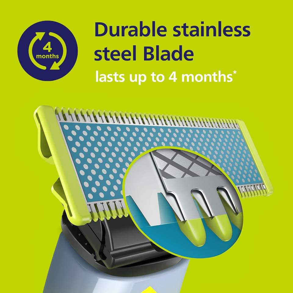 ใบมีดโกน Philips OneBlade QP225/50 ของแท้ 2 ชิ้น สำหรับการโกนครั้งแรก ลดการเสียดสี พร้อมหัวตัดแต่งขน ใช้ได้ 4 เดือน