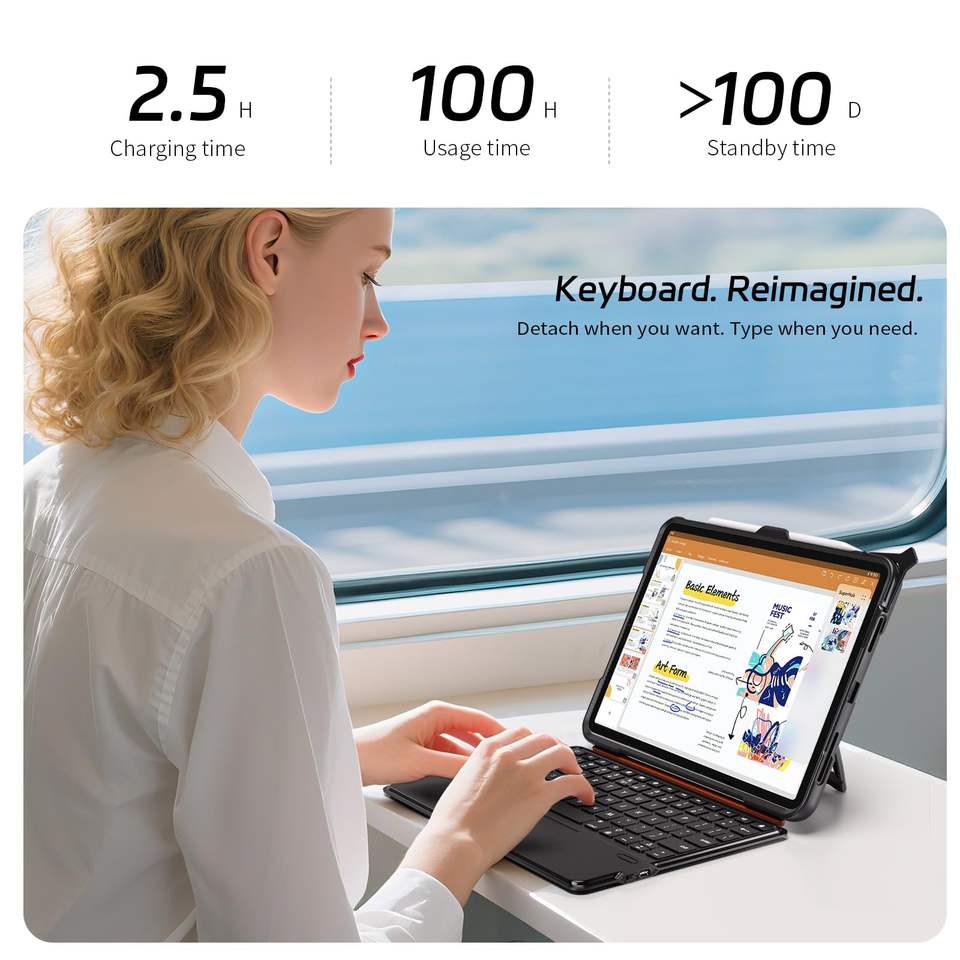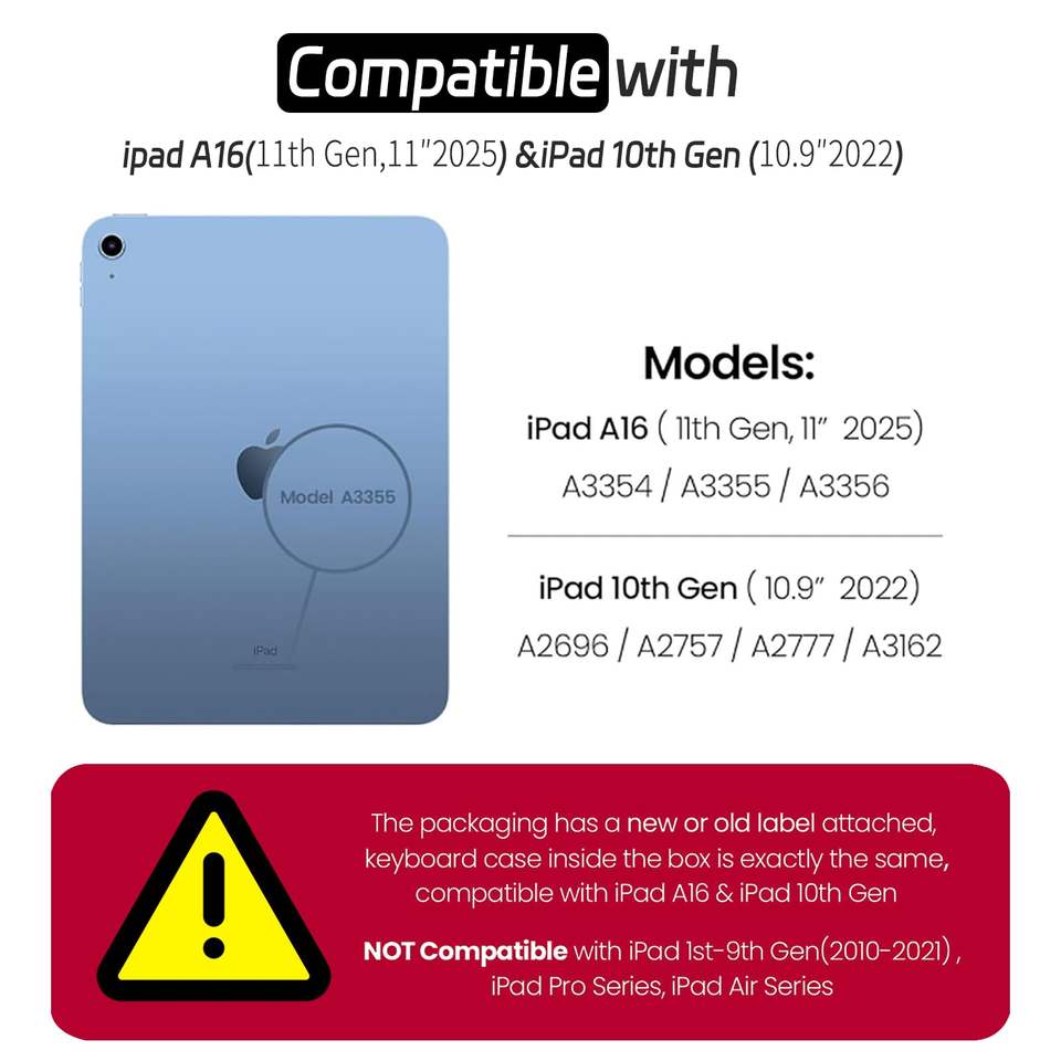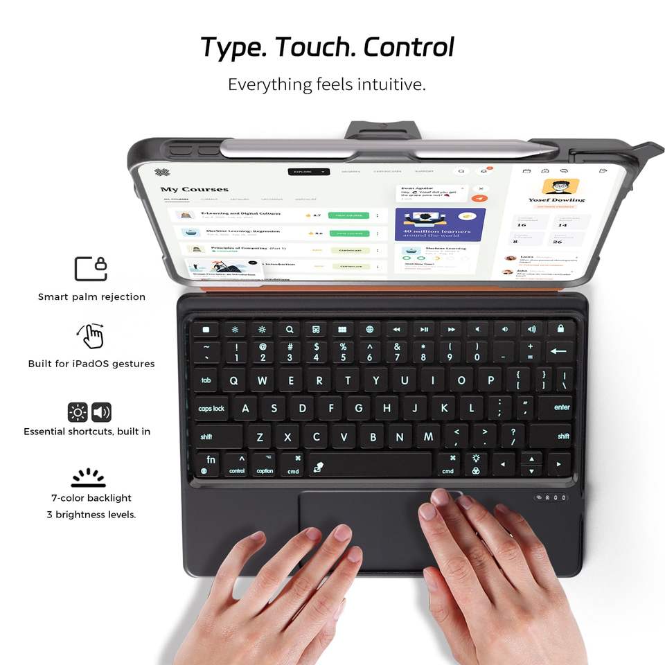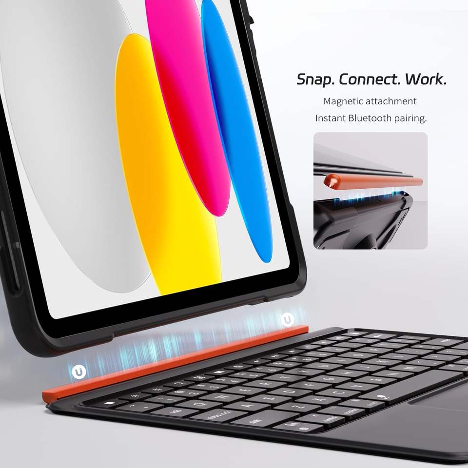 เคสสำหรับ iPad รุ่นที่ 11/10 พร้อมคีย์บอร์ดและแทร็คแพดแบบถอดได้, ไฟแบ็คไลท์ 7 สี, หมุนได้ 360 องศา ° ขาตั้งแบบหมุนได้, สายคล้องมือ