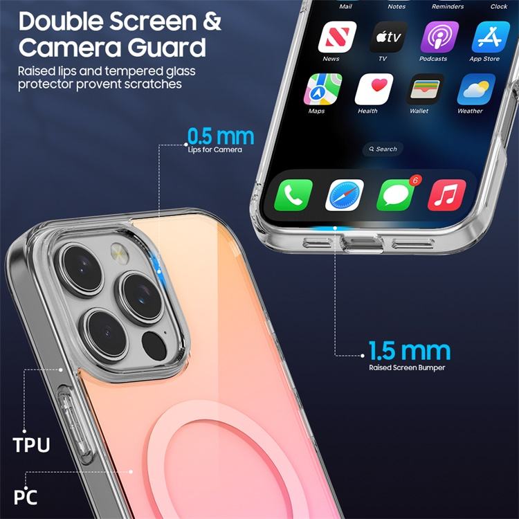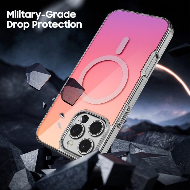 เคสโทรศัพท์มือถือแบบใสมีแม่เหล็กชาร์จไร้สายไล่ระดับสีแบบเลเซอร์หรูหราสำหรับ iPhone 16 PRO MAX Premium