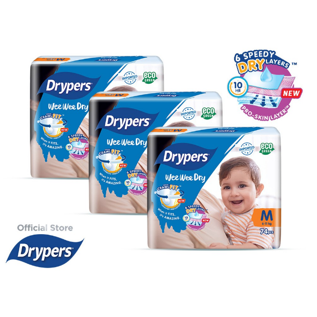 สำหรับเด็กทารกและเด็กเล็ก ไดร์เปอร์ส วีวี ดราย ไซส์ M (74 ชิ้น x3) ไซส์ M (6-11 กก.)