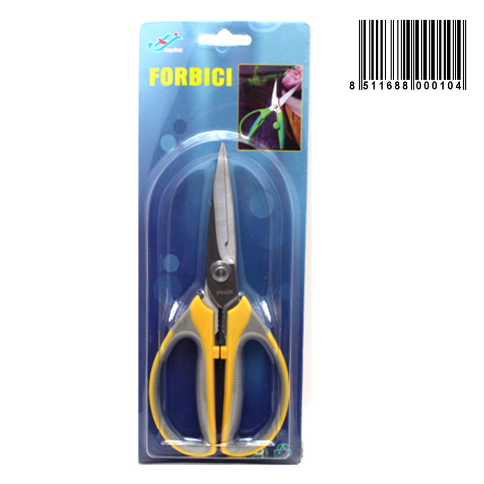 กรรไกรอเนกประสงค์ ใบมีดสแตนเลส ด้ามจับพลาสติกสีเหลือง อุปกรณ์งานฝีมือ เครื่องมือตัด DIY 12 ชิ้น