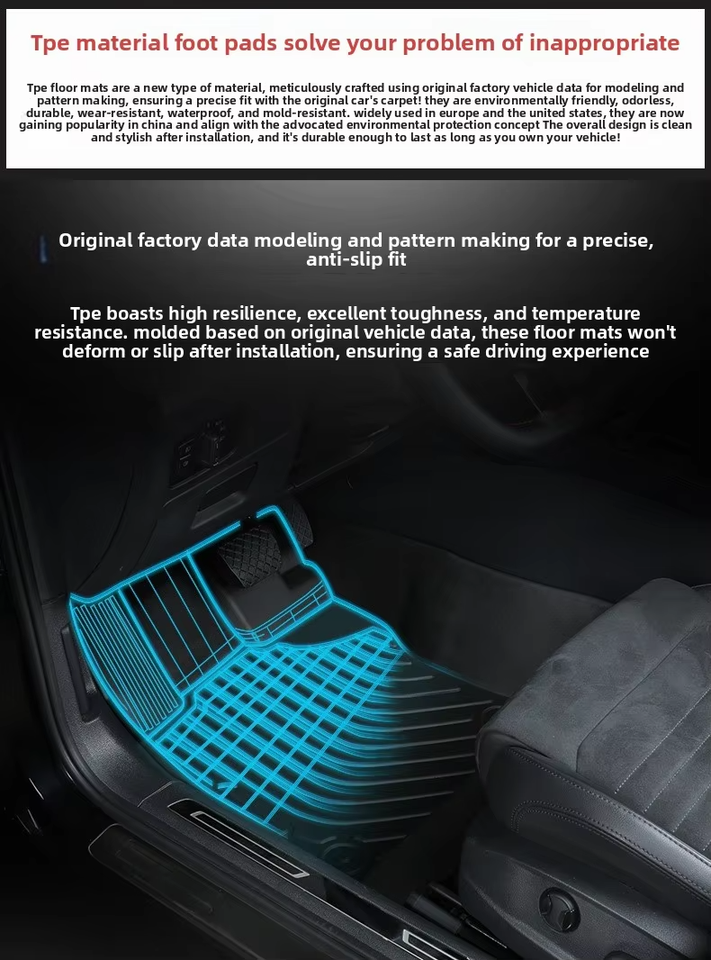 เสื่อเท้าฟอร์ด3ชิ้นแบบหรูหรา TPE สำหรับ Civic Rio niro K3/K5 Soul ceed Cerato Forte Optima-3.5mm หนา