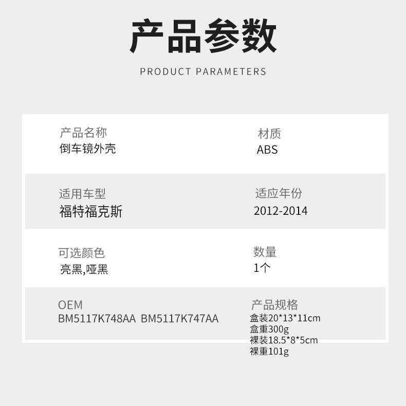 ฝาครอบกระจกมองข้างฟอร์ด โฟกัส ปี 2012-2014 วัสดุ ABS ชุดเต็ม โครงกระจกมองหลัง อะไหล่เปลี่ยนทดแทนสำหรับรถยนต์