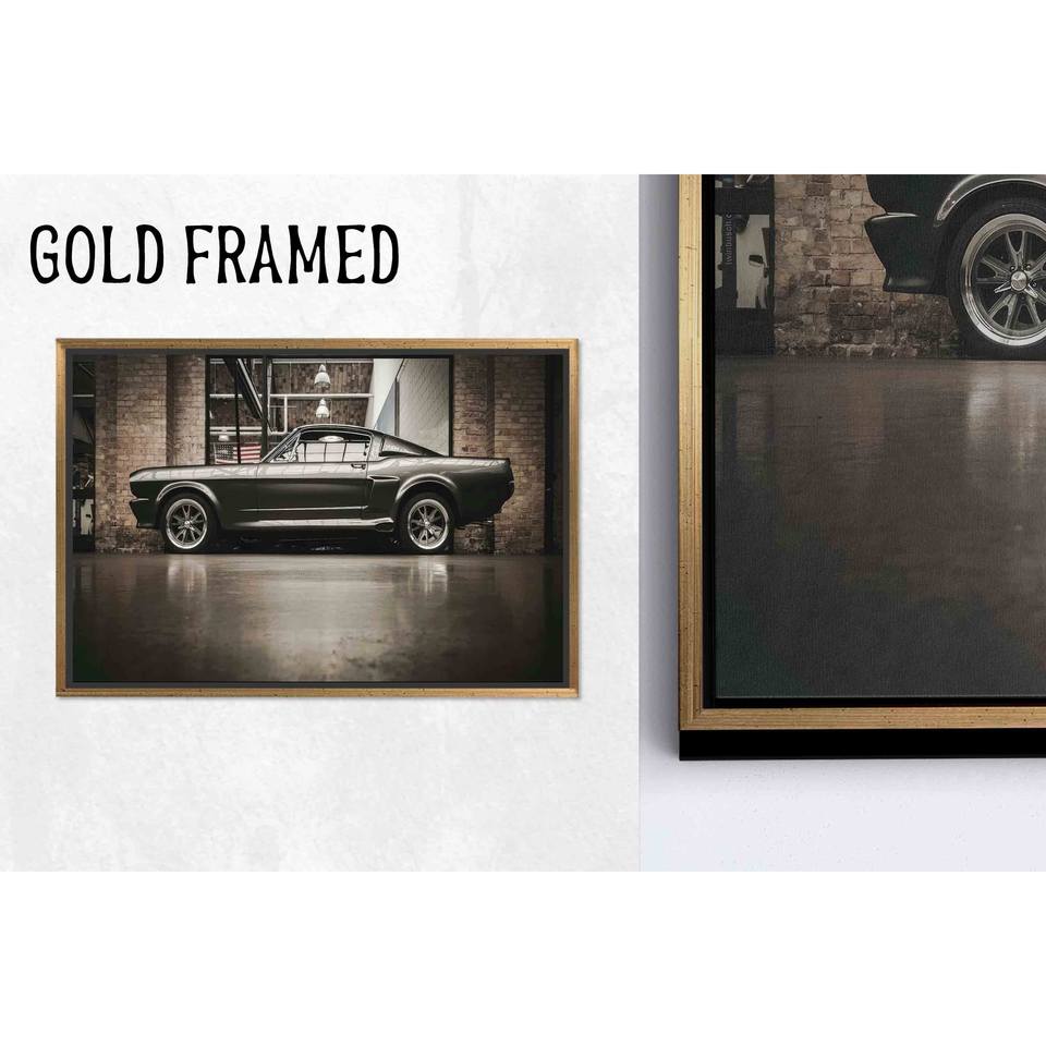 ภาพพิมพ์บนผ้าใบฟอร์ดมัสแตง: ภาพพิมพ์กระจกนิรภัยลายรถอเมริกันคลาสสิก,1P Goldframedcanvas