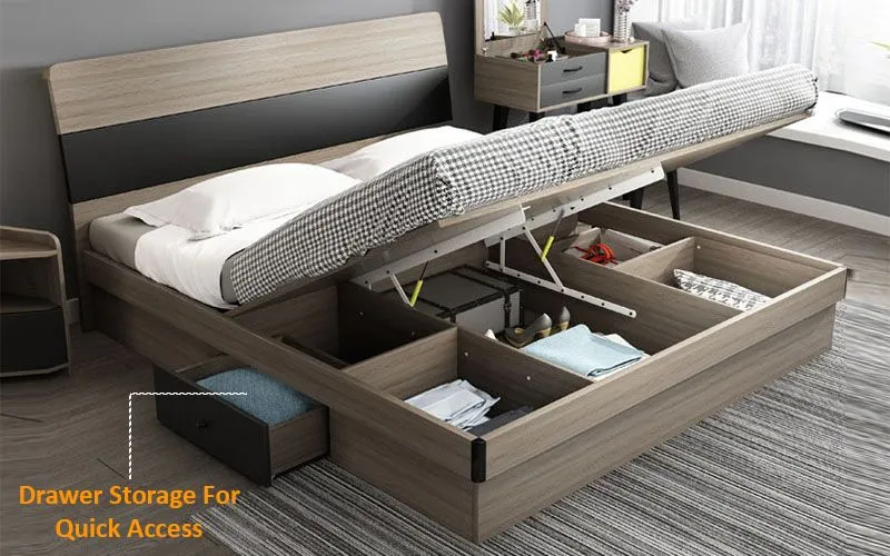 เตียงควีนฟอร์ดพร้อมที่เก็บของเฟอร์นิเจอร์โต๊ะอาหารในทางปฏิบัติ