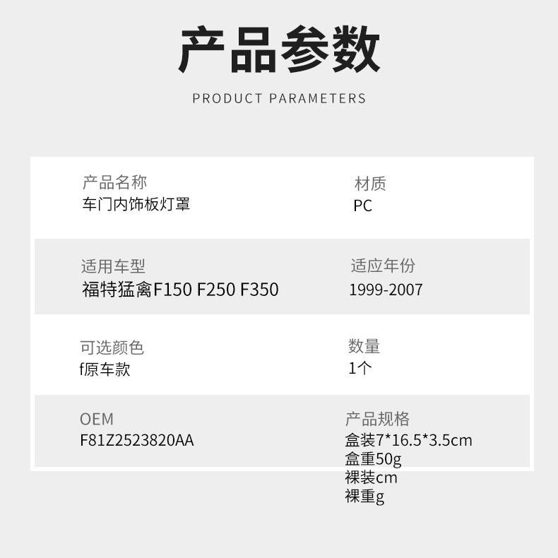 ฝาครอบไฟภายในประตูรถฟอร์ด แร็ปเตอร์ F250 F350 F450 วัสดุ PC อะไหล่เปลี่ยนไฟท้ายอเนกประสงค์ รุ่น L054