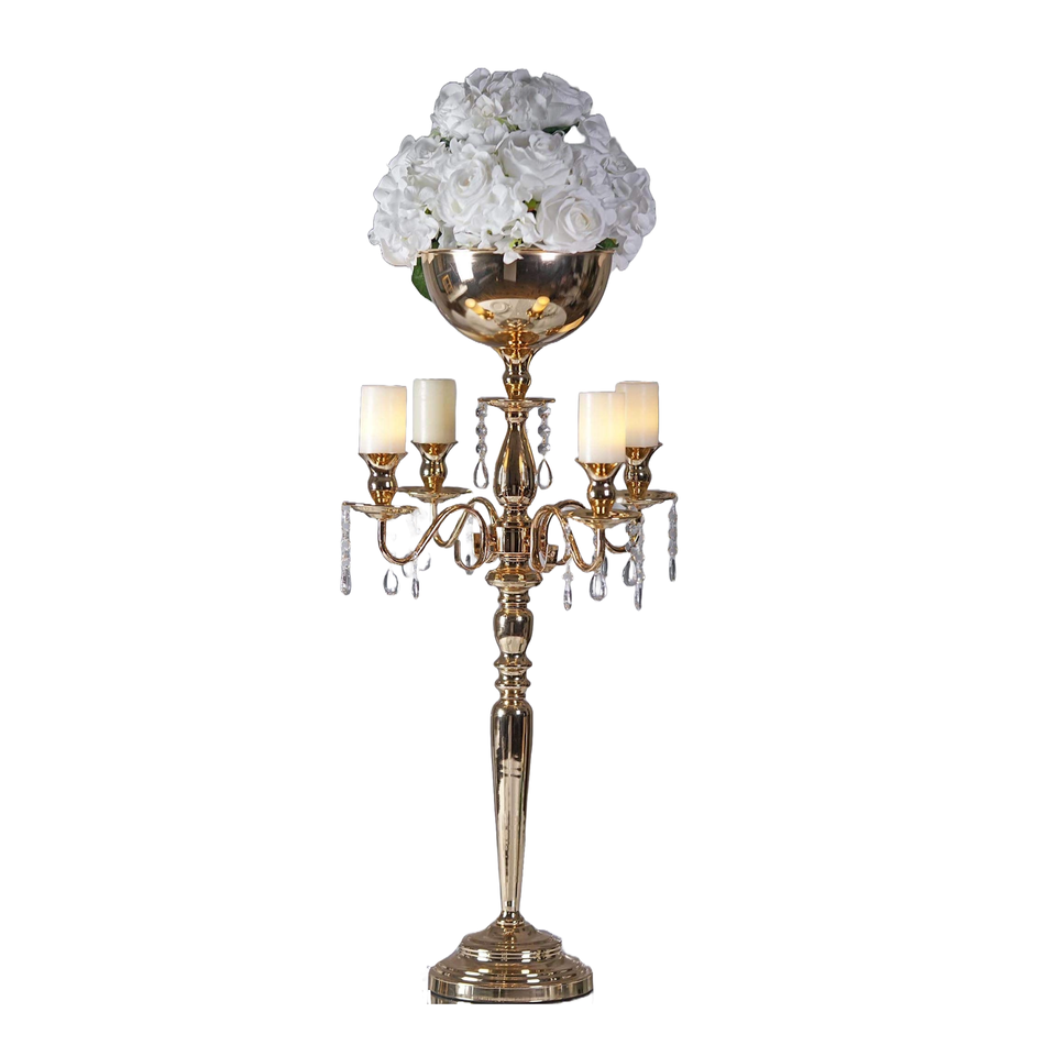 โคมไฟระย้าโลหะเงิน 5 แขนดีไซน์ต่างประเทศสําหรับงานแต่งงานทําจากขนาดปกติเมตาบริสุทธิ์รูปร่างที่กําหนดเอง
