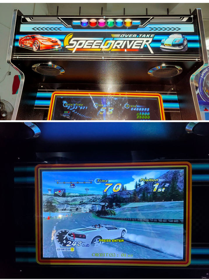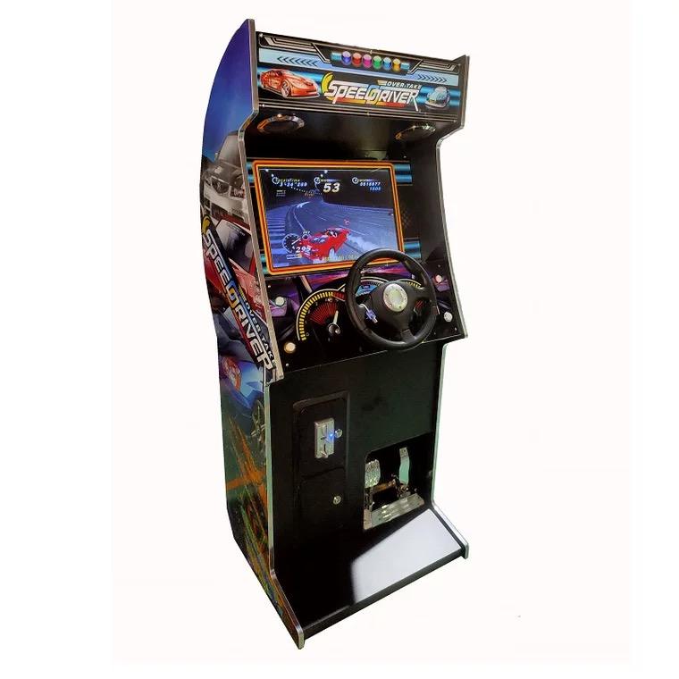เครื่องเกมอาร์เคดแข่งรถขนาดใหญ่ 22 นิ้ว ทำจากไม้ สำหรับการค้าต่างประเทศ แบบหยอดเหรียญ 1 ผู้เล่น 110/220V ปลั๊กแบบ US