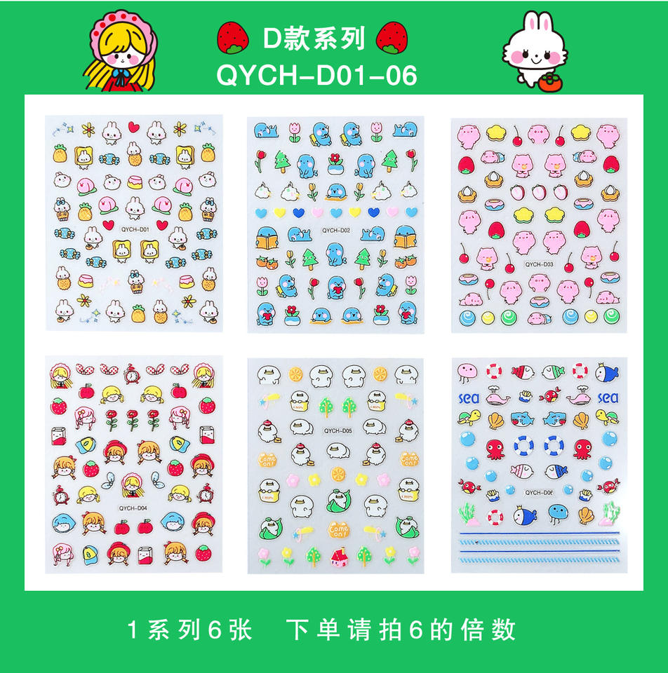 3D การ์ตูนรูปสัตว์สำหรับเด็กผู้หญิงเด็กผู้หญิงสติกเกอร์ติดเล็บแบบเกาหลีขายส่ง