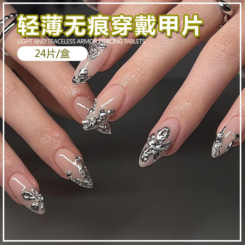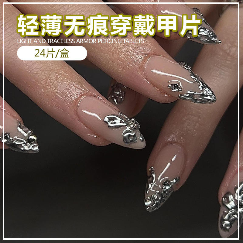 ปลายเล็บแบบสวมใส่ได้แบบย้อนยุค24ชิ้นทำจากเงิน