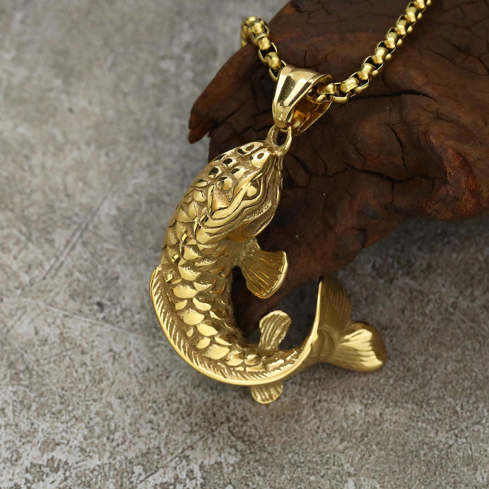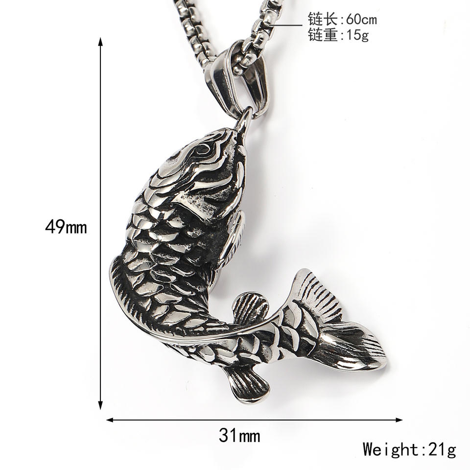 การค้าต่างประเทศเครื่องประดับใหม่สไตล์คันทรี่บุคลิกภาพ Koi สร้อยคอผู้ชาย Punk Hop จี้เหล็กไทเทเนียม
