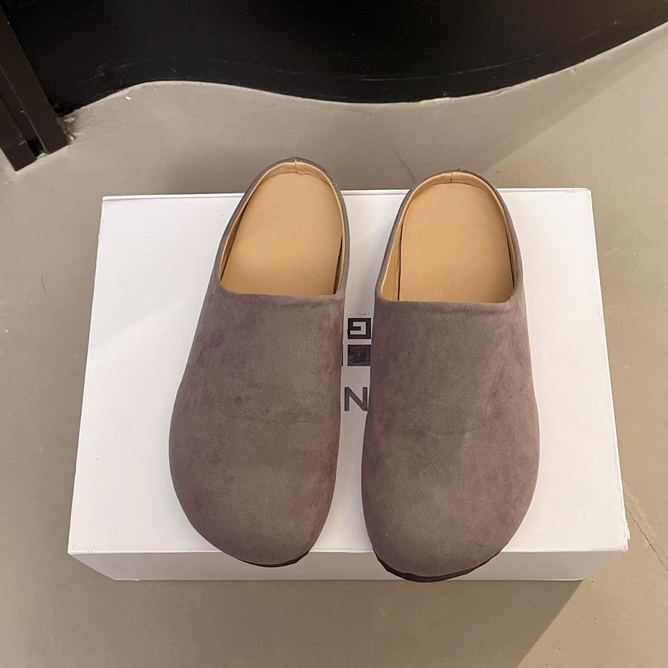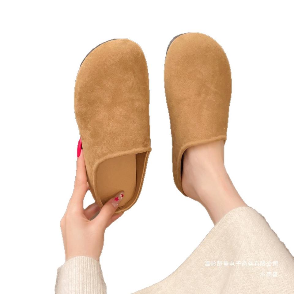 รองเท้าหุ้มส้นแบบเปิดหลังสไตล์ใหม่รองเท้าชั้นเดียวรองเท้าวินเทจหัวรองเท้าหนังนิ่มแบบเปิดครึ่งนิ้วสำหรับผู้หญิงรองเท้าลำลองน่ารัก Birkenn
