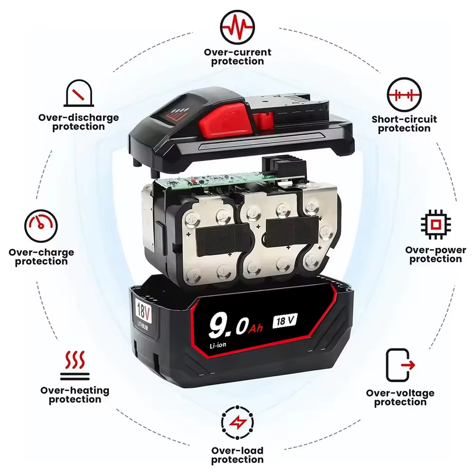 แบตเตอรี่ลิเธียมไอออน Forenpower ความจุสูง 18V 9Ah ใช้ได้กับเครื่องมือไร้สาย 18v