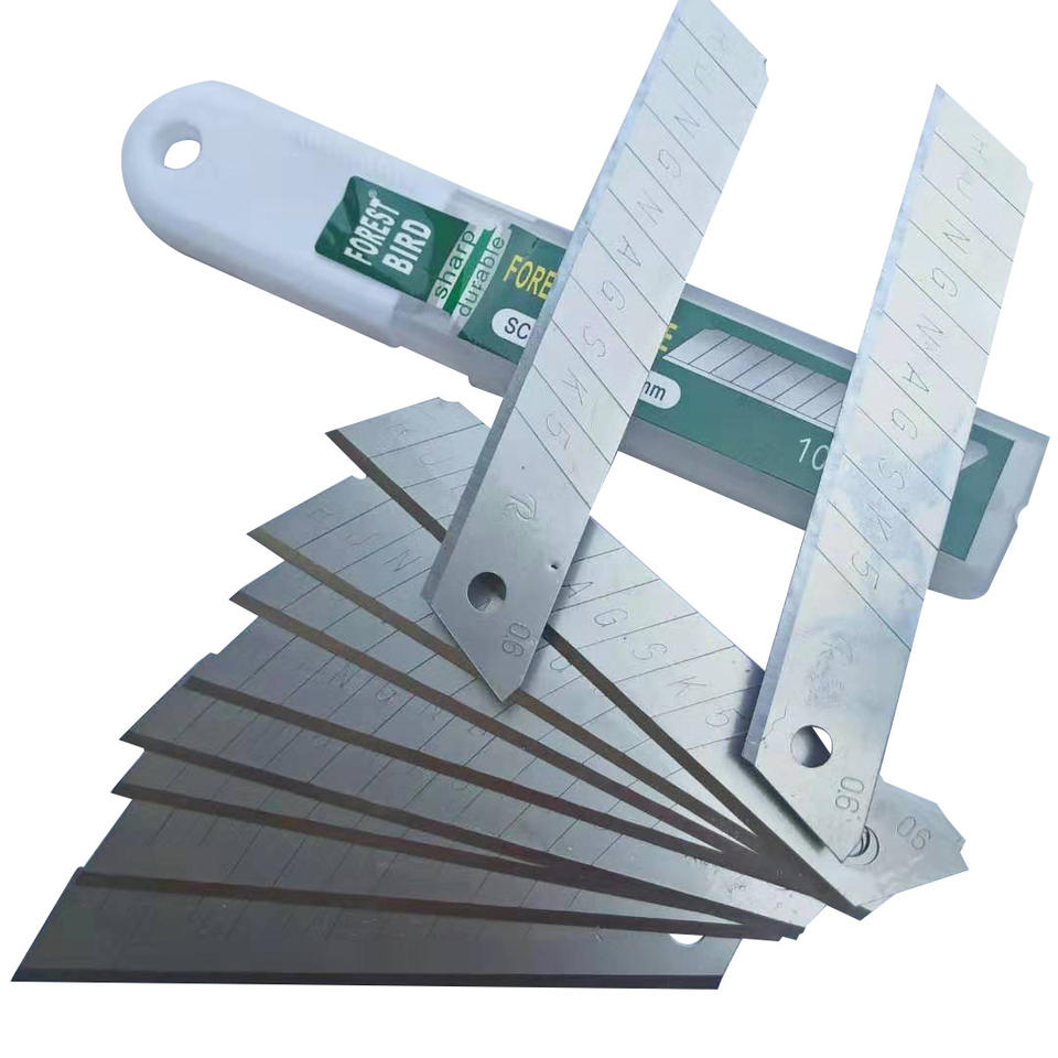 ใบมีดคัตเตอร์ Forest Bird ขนาด 118 มม. หนา 0.6 มม. ทำจากเหล็กสีดำ สำหรับตัดกระดาษและวอลเปเปอร์