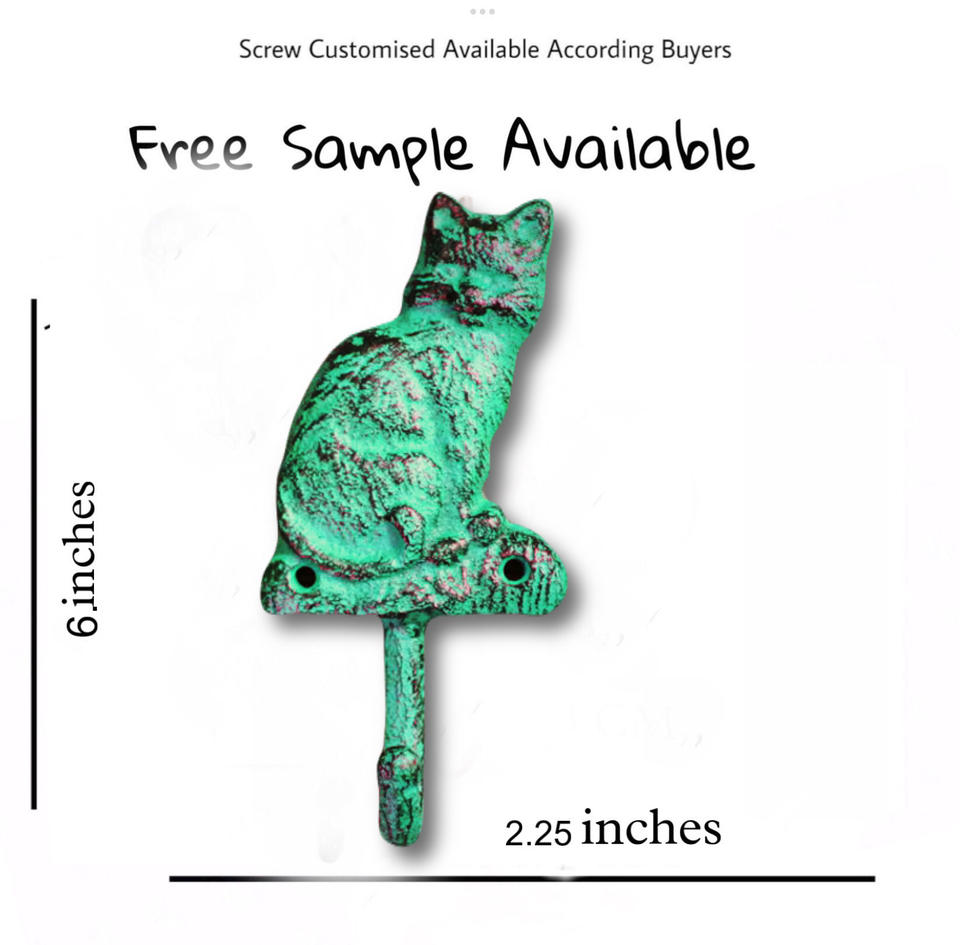 ตะขอแขวนเสื้อและพวงกุญแจสำหรับแขวนเสื้อโค้ทรูปสัตว์แมวสีเขียว