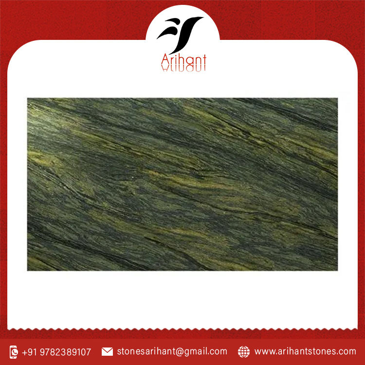 แผ่นหินอ่อนสีเขียวป่าแบบทันสมัยแผ่นขัดสำหรับพื้นวิลล่าเคาน์เตอร์ห้องครัวหินธรรมชาติแผ่นใหญ่สำหรับโรงแรมอินเดีย