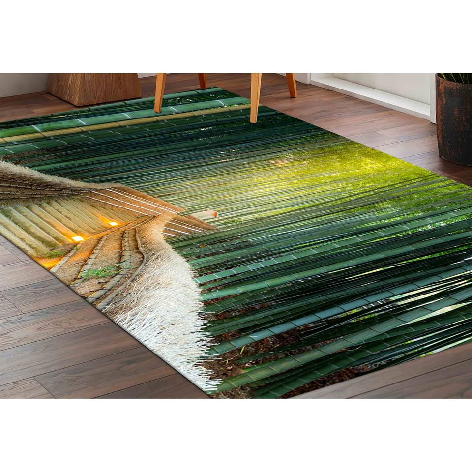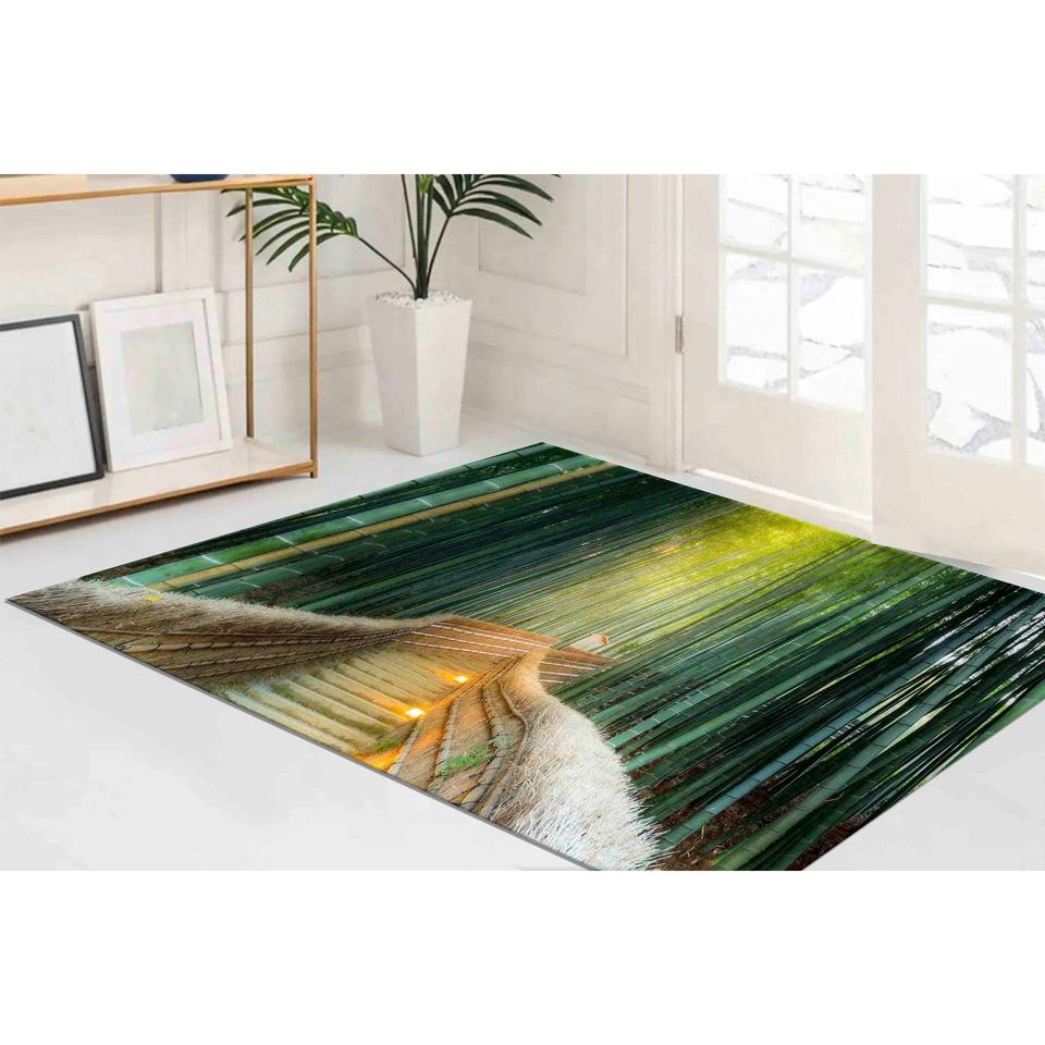 พรมลายทิวทัศน์ป่าไม้: พรมตกแต่งห้องนั่งเล่นแบบสั่งทำพิเศษ กันลื่น พร้อมพรมขนนุ่ม