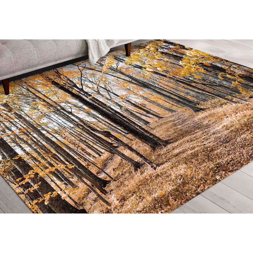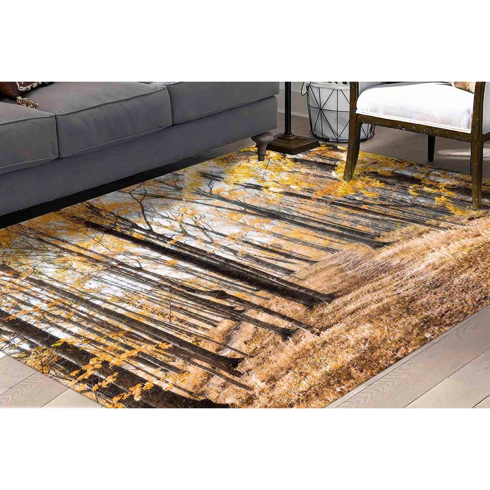 พรมลายทิวทัศน์ป่าไม้: พรมกันลื่น พรมลายพิมพ์ทำความสะอาดง่าย พรมเชนิลล์