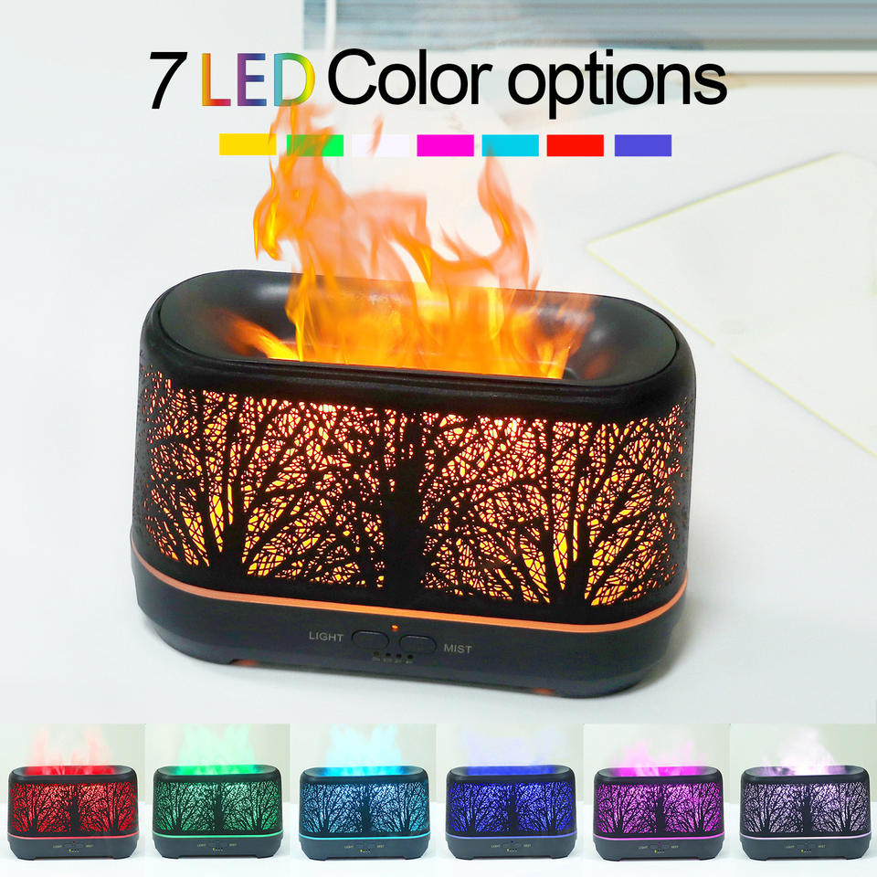 เครื่องเพิ่มความชื้นในอากาศ Forest Lantern พร้อมไฟ LED รูปเปลวไฟ ความจุ 0.5 ลิตร สำหรับใช้ในบ้านและสำนักงาน