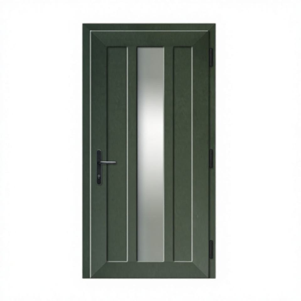เส้นทางป่าไม้ | ประตูพีวีซีสีเขียวเข้มแบบแนวนอนทันสมัย พร้อมผิวด้านธรรมชาติ สำหรับใช้ในห้องครัวและโรงเรียน