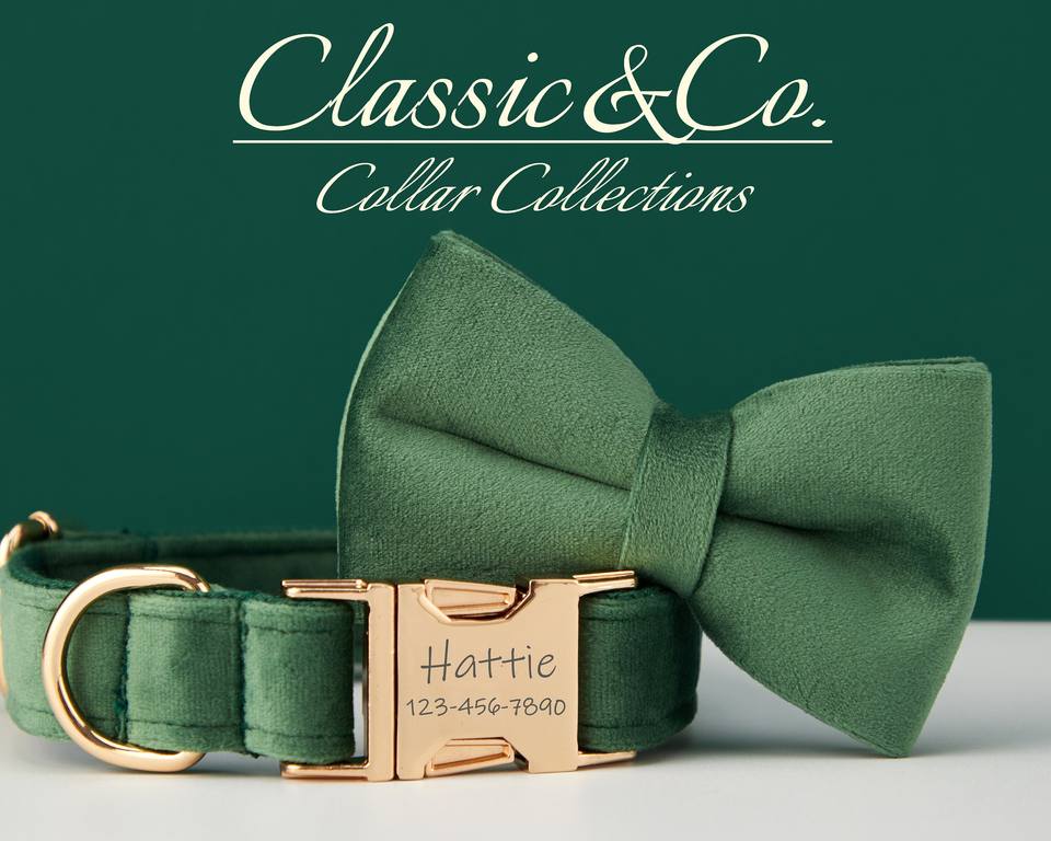 ฟอเรสต์ วีทชุดสายจูงผูกโบว์สำหรับสุนัขแบบปรับแต่งได้ แกะสลักชื่อสัตว์เลี้ยง หัวเข็มขัดโลหะ ของขวัญวันเกิดสำหรับลูกสุนัข จัดส่งฟรี