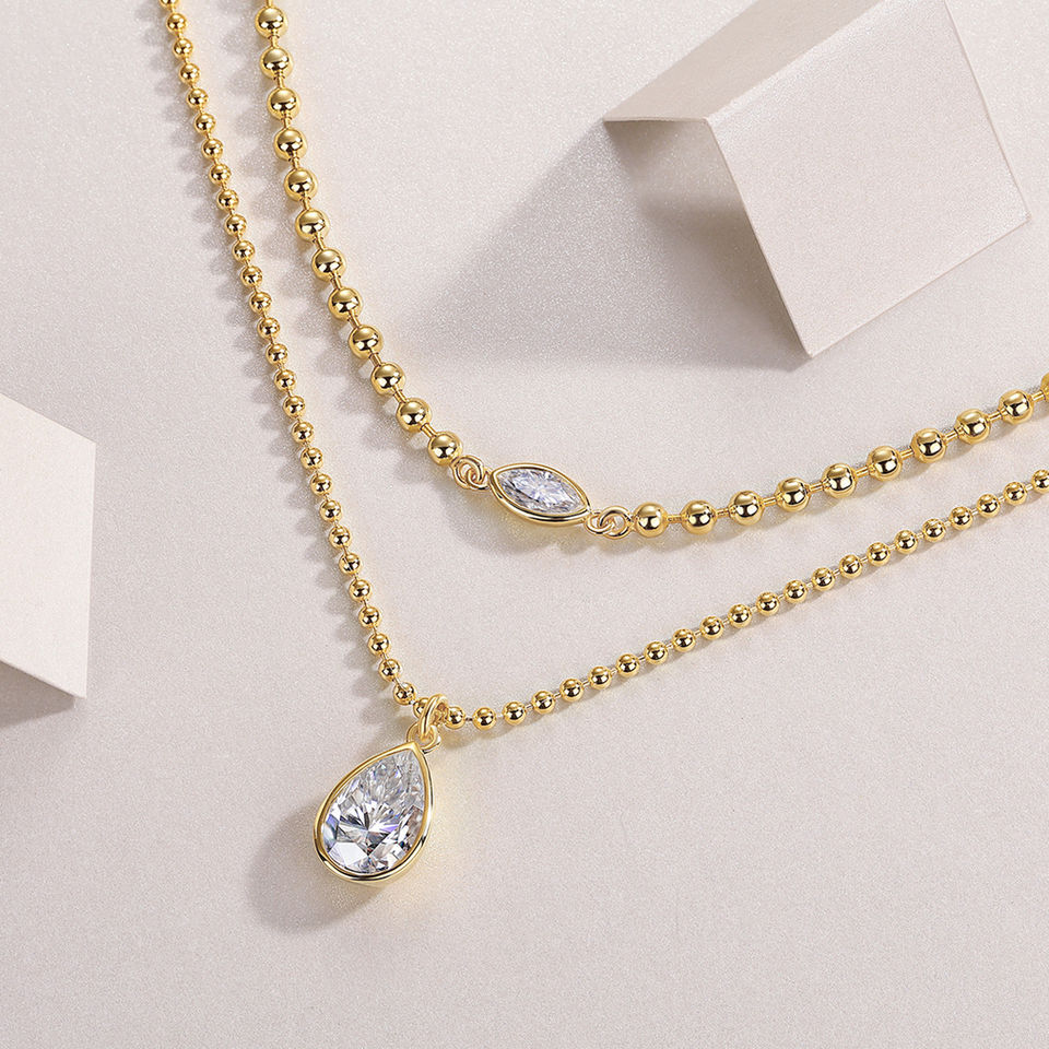 สร้อยคอเพชรโมอิสยอดนิยมวินเทจ925ดาว N15114ดาวตลอดกาลสร้อยคอชุบทองแบบเรียงซ้อนกันห่วงโซ่ประดับลูกปัดไม่ซีดจาง