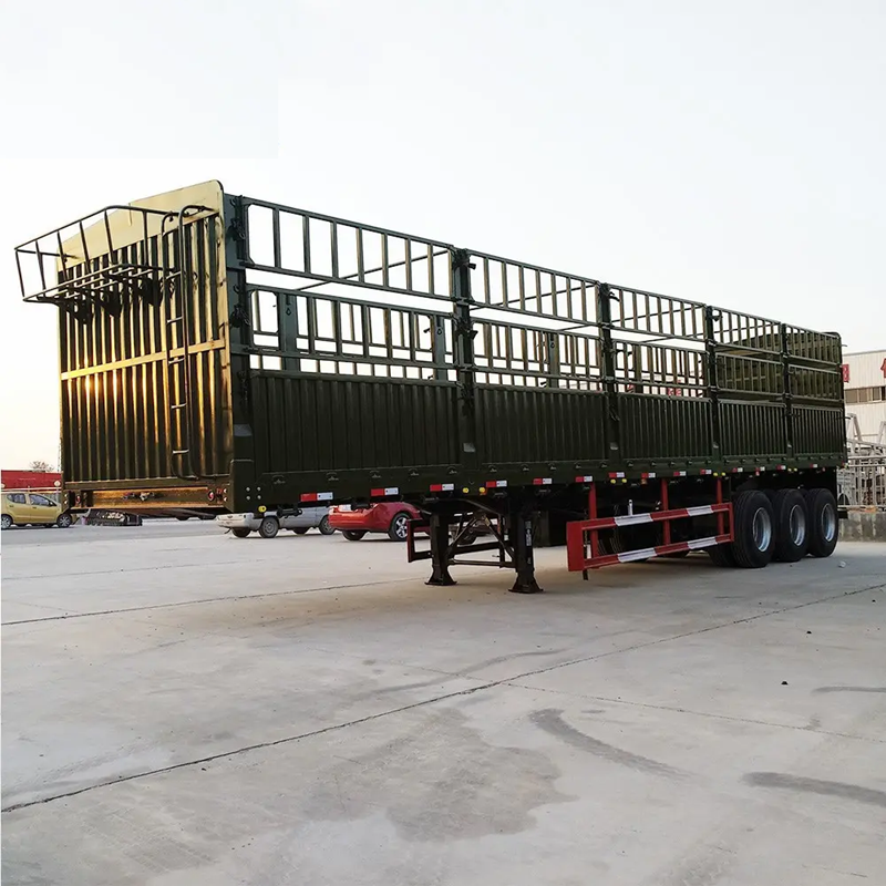 รถบรรทุกพ่วงแบบมีรั้ว 3 เพลา รับน้ำหนัก 30-80 ตัน สำหรับขนส่งสินค้า