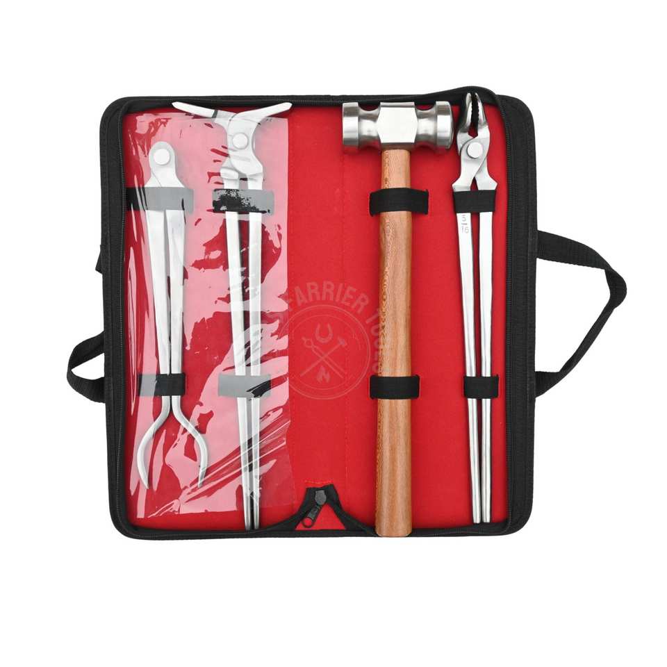 คุณสมบัติ:ชุดอุปกรณ์ดูแลกีบเท้าที่สะดวกสบายพร้อมเครื่องมือช่างตีเหล็กและช่างตีเหล็ก