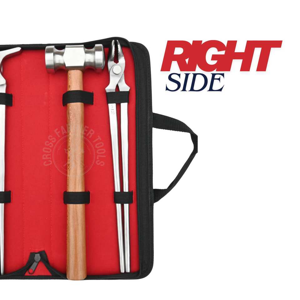 วัสดุ:ค้อนตีเหล็กและเครื่องมือแยกรองเท้าสแตนเลสในกล่องเก็บอุปกรณ์