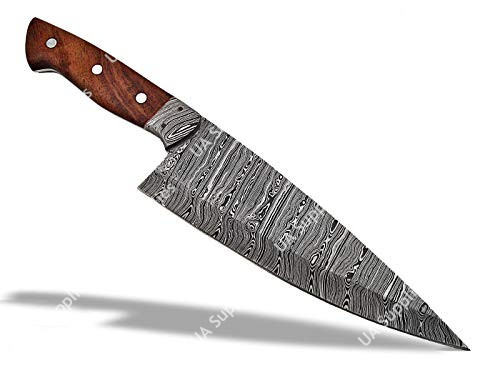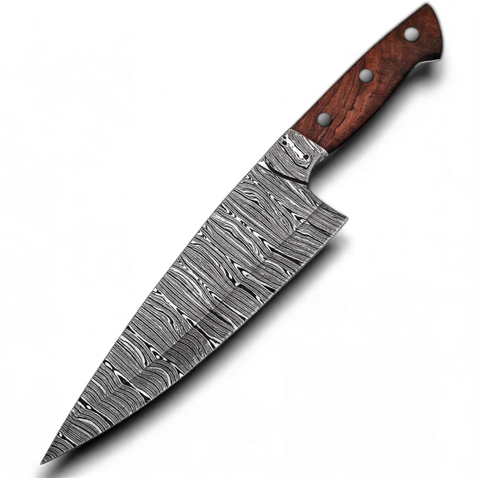 มีดเชฟเหล็กดามัสกัสลายบิดเกลียวเฉพาะตัว ขนาด 8 นิ้ว ใช้งานได้ทุกวัน สำหรับมืออาชีพ คมพิเศษ ใช้ได้ทั้งมือซ้ายและขวา ด้ามไม้พะยูง