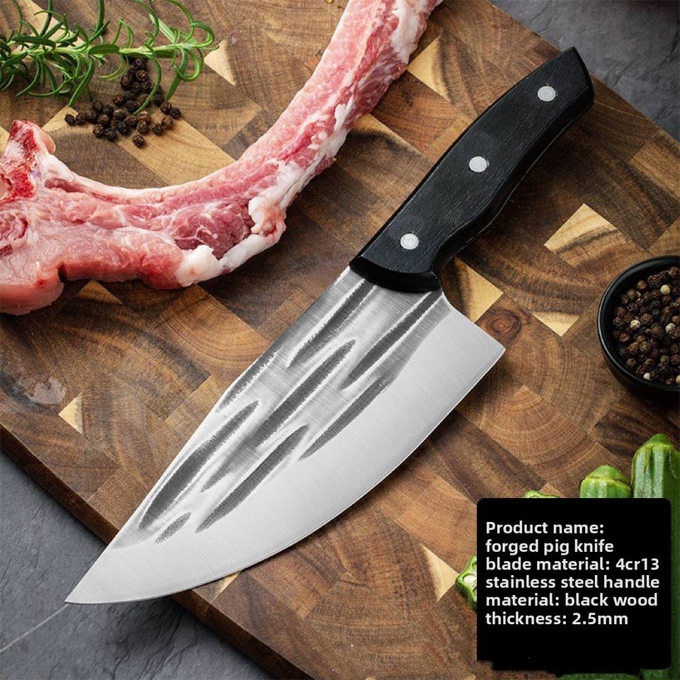 มีดเชฟลายค้อนตีเหล็กสำหรับหั่นเนื้อหมู ใช้ในครัว พร้อมด้ามไม้ เหล็กคม