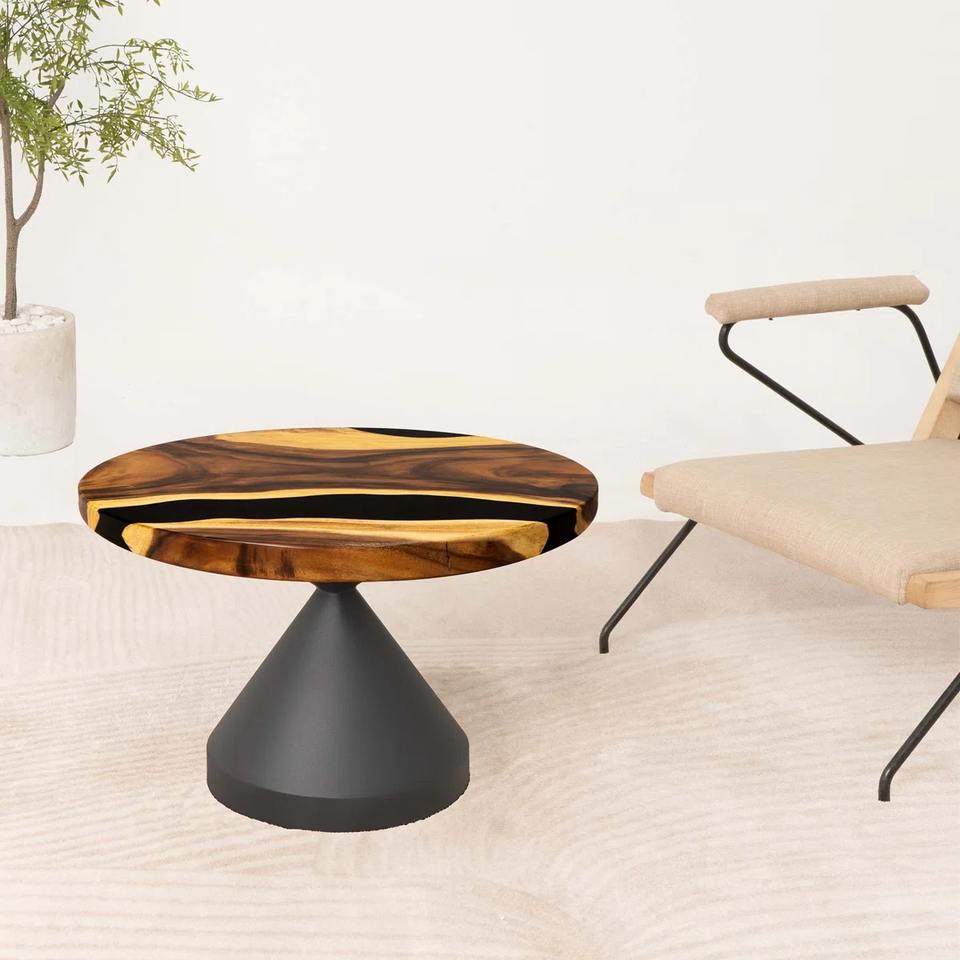 โต๊ะกาแฟโลหะขึ้นรูปทรงทันสมัยเป็นมิตรกับสิ่งแวดล้อมพร้อมท็อปไม้สำหรับเฟอร์นิเจอร์บ้าน
