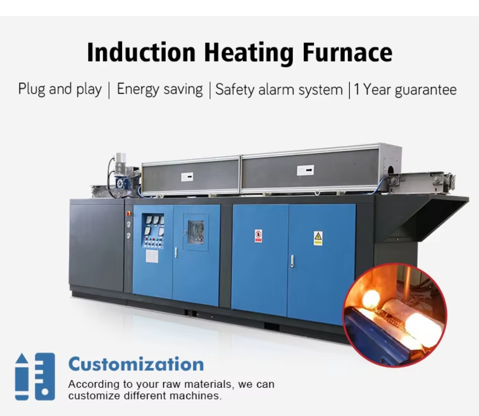 เตาอบความร้อนเหนี่ยวนำแบบกำหนดเอง 200KW 400KW 500KW 380V สำหรับการตีขึ้นรูป การอัดขึ้นรูป และการอบชุบด้วยความร้อนเหนี่ยวนำ รับประกัน 1 ปี