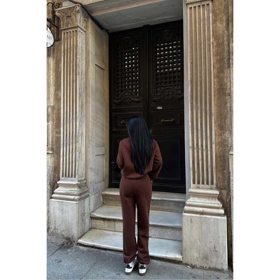 ชุดสูทสีน้ำตาลมุกแบบเป็นทางการ
