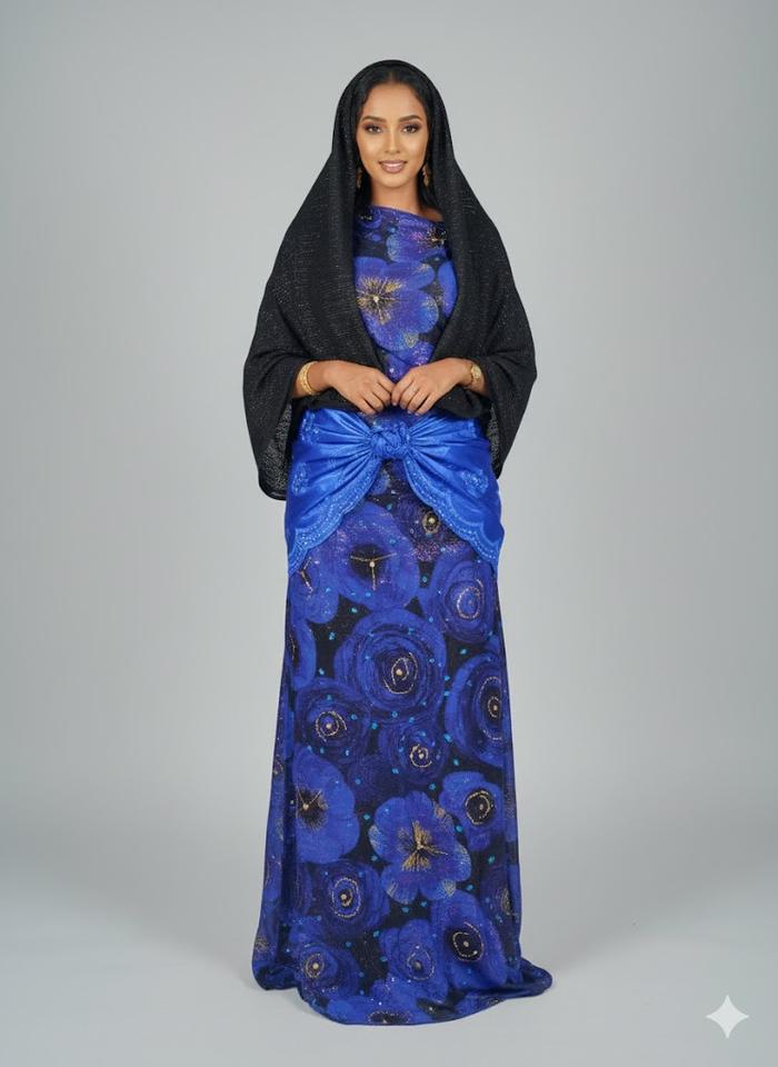 ชุดแต่งงานแบบเป็นทางการ คอลเลคชั่นชุดพื้นเมืองโซมาเลีย ผ้าฟรานซาวี ดีรัก ทวิลล์ ลายแจ็คการ์ดทอเรียบ ลายดอกไม้ ประดับเลื่อม ลูกปัด และหิน