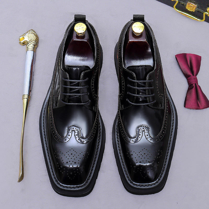 Formal leather shoes, Italian men's leather clothing shoes, embossed calfskin, fashionable handcrafted design leather shoes