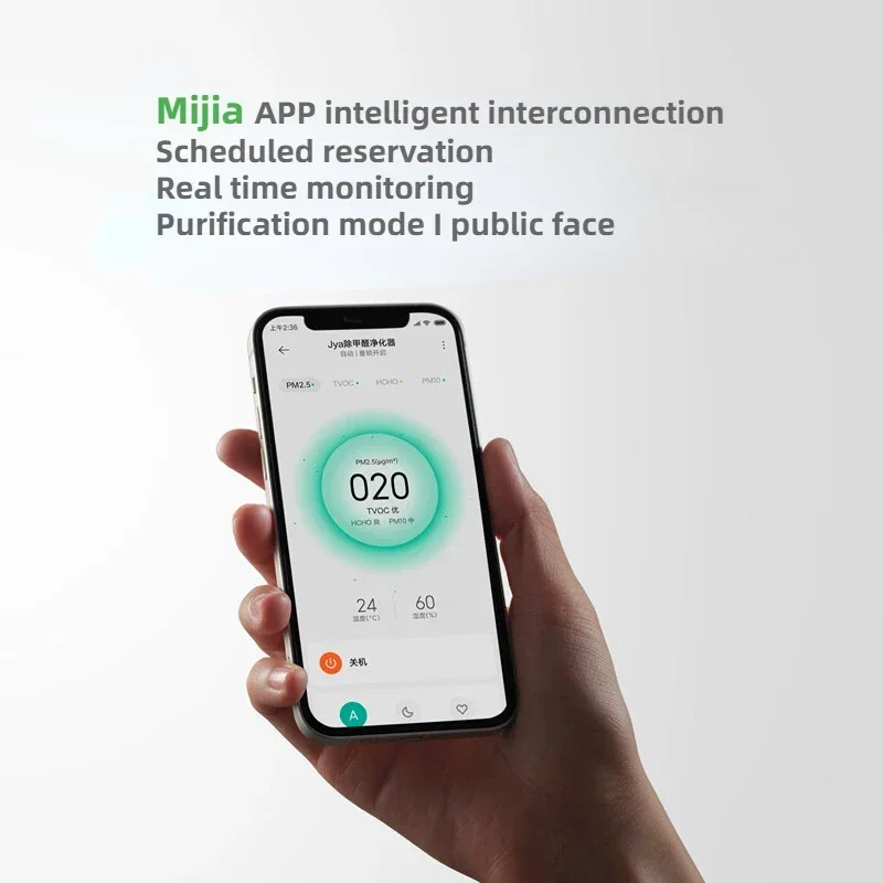 เครื่องฟอกอากาศกำจัดฟอร์มาลดีไฮด์ Smartmi Jya Fjord Atom สำหรับบ้านและสำนักงาน ปี 2024 พร้อมแอปพลิเคชันควบคุม