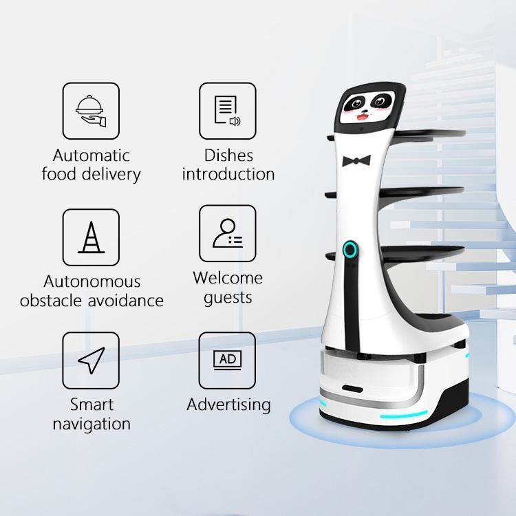 หุ่นยนต์ส่งอาหาร แพนด้า บริการ 4 ถาด ควบคุมผ่านแอป ชาร์จอัตโนมัติ รับน้ำหนักได้ 30 กก. ระบบนำทาง GPS/เลเซอร์