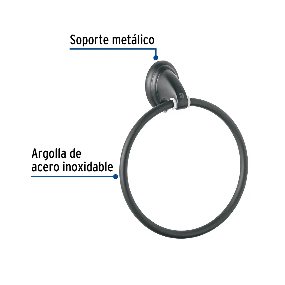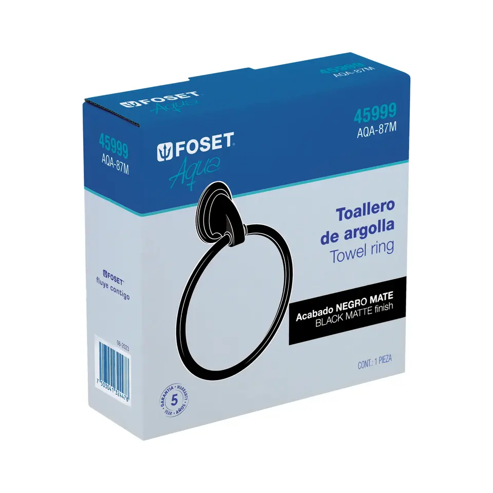 Foset Aqua Metal Towel Ring Box of 6 Units with Black Finish for Hotels