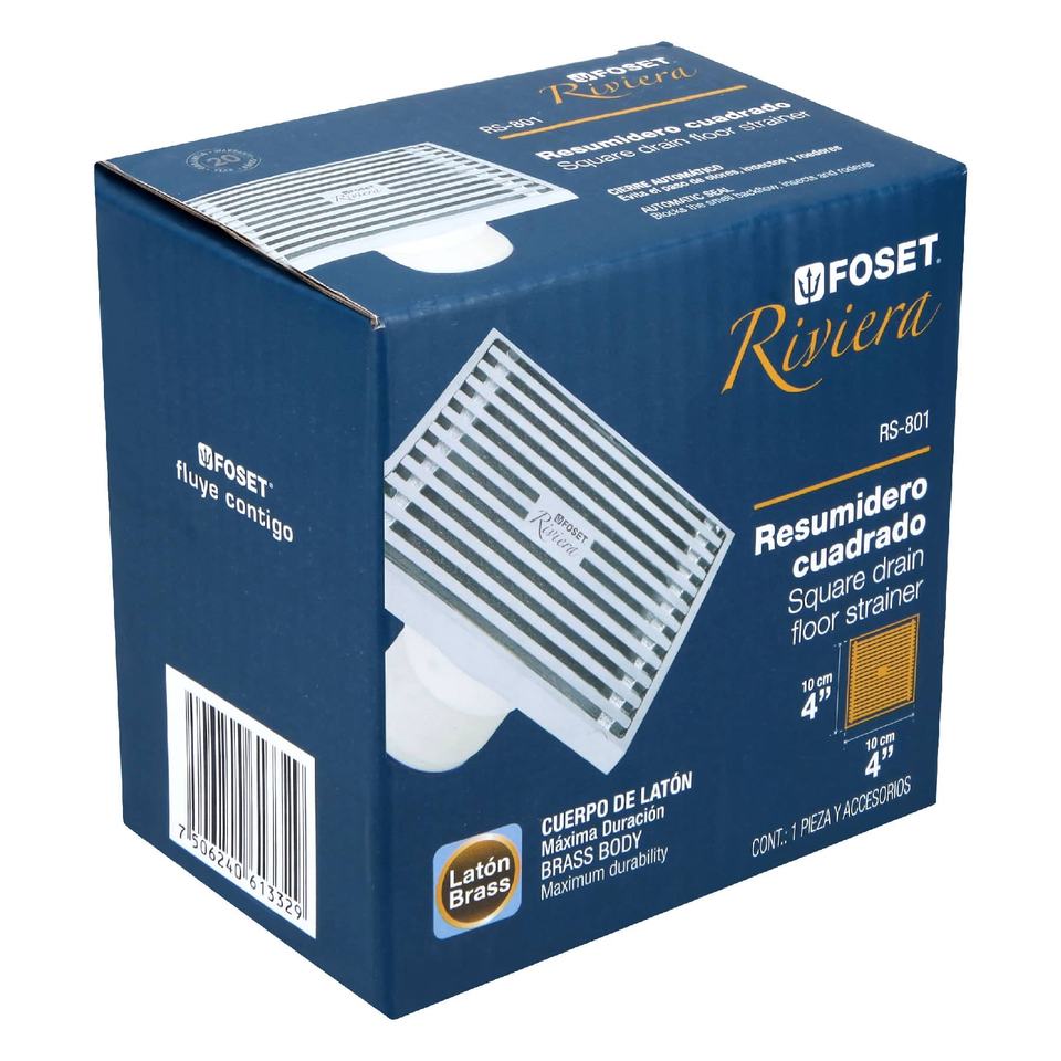 Foset RS-801 Modern Strainer 4 X 4' Brass Drain Square Plastic Basin Drainer Electroplated for Hotel Sink for Modern Hotels