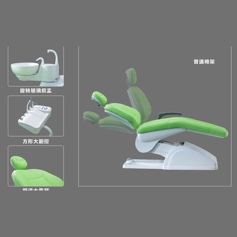 เก้าอี้ทำฟัน Foshan รุ่น 208A สีเขียวอ่อน พร้อมอ่างบ้วนน้ำลายแบบหมุนได้ ชุดอุปกรณ์ครบชุด