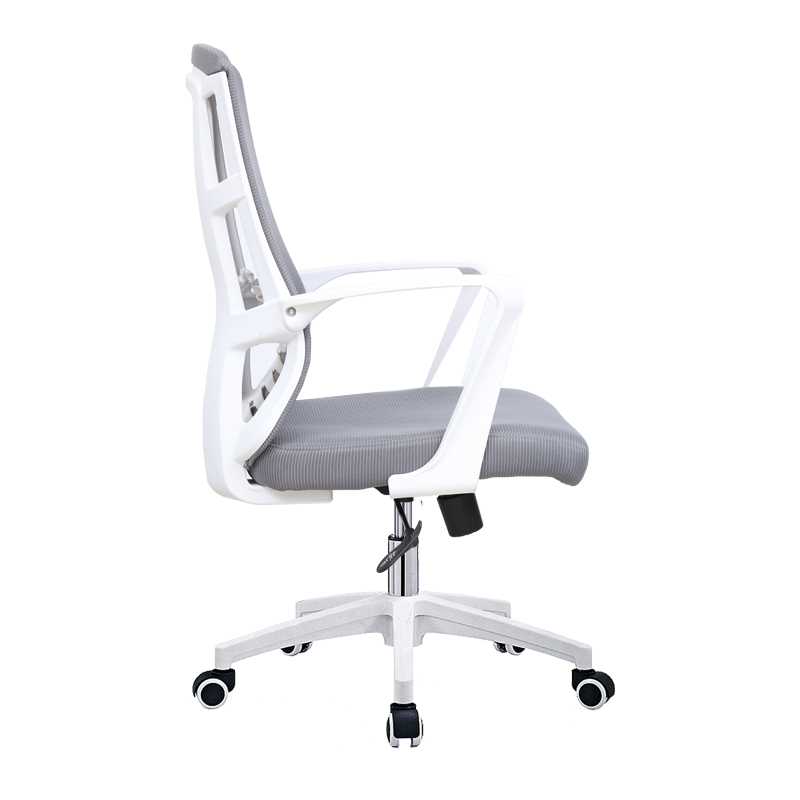 Foshan เก้าอี้สำนักงานแบบทันสมัยพร้อมผ้าตาข่ายเต็มตัวและผ้าหลังตรงกลางเฟอร์นิเจอร์ปรับได้ตามหลักสรีรศาสตร์สีขาวดีไซน์ร่วมสมัย