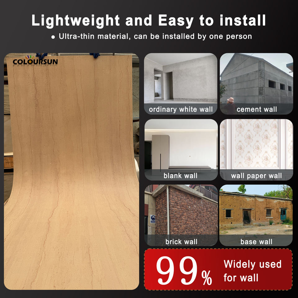 แผ่นผนังวอลเปเปอร์ Foshan สำหรับภายนอกอาคาร แผ่นปูผนังซีเมนต์ลายหินอ่อน แผ่นหินอ่อนเทียมแบบยืดหยุ่น แผ่นผนังหินอ่อนเทียม