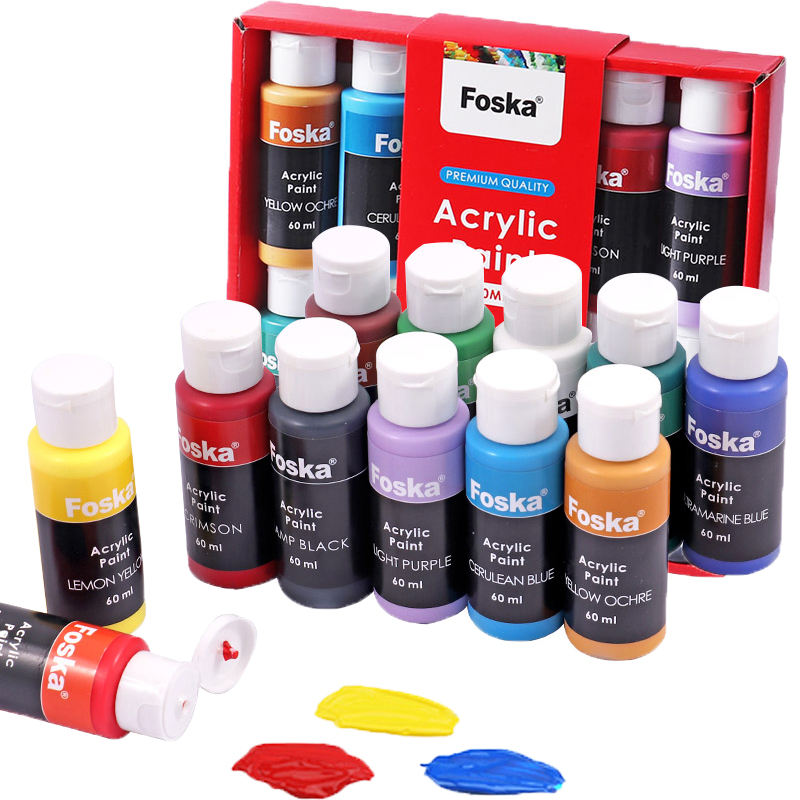 สีอะคริลิค Foska 12 สี (2 ออนซ์/60 มล.) สีเข้มข้น ชุด 20 ชิ้น สำหรับระบายสีบนฟักทองฮาโลวีน ผ้าใบ เซรามิก หิน ไม้
