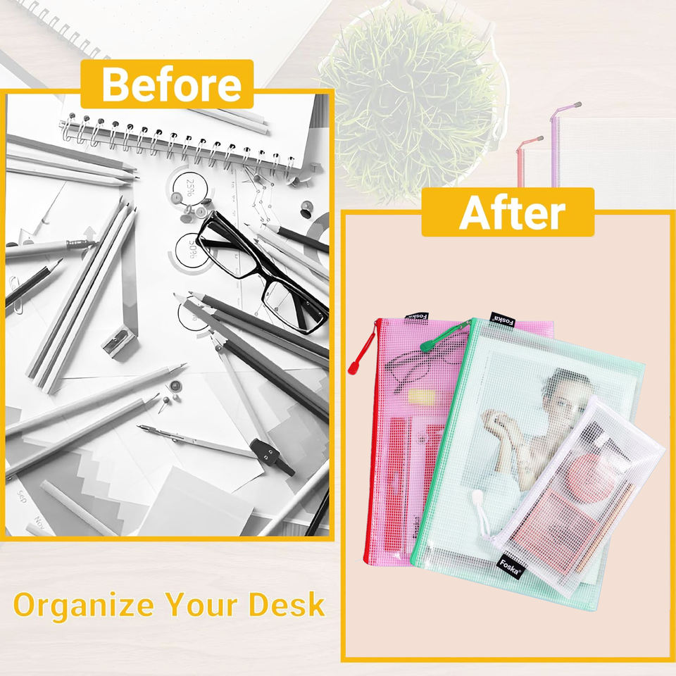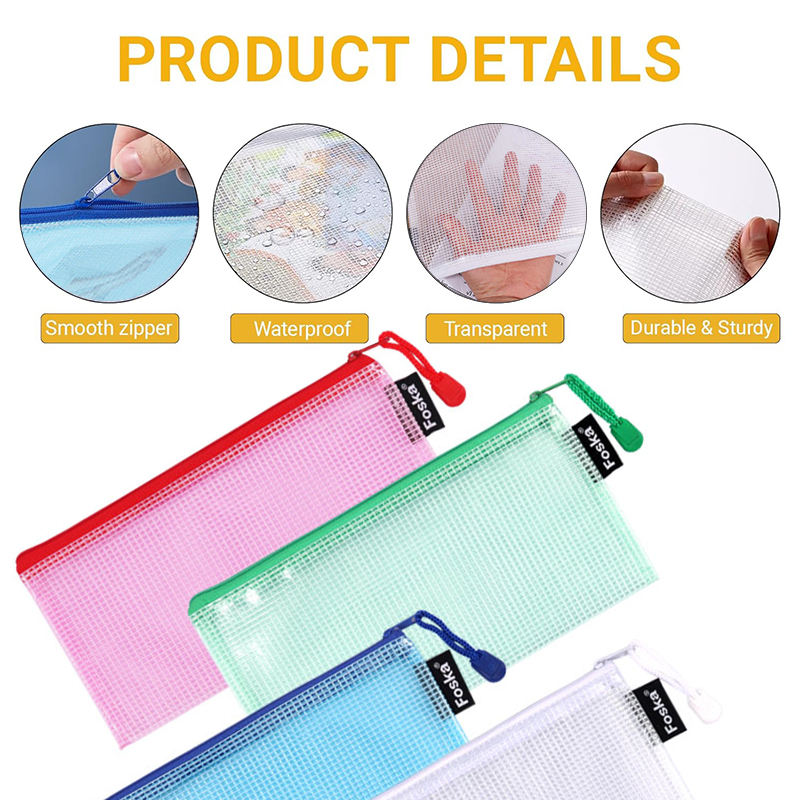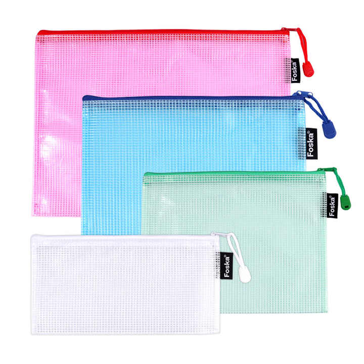 ถุงตาข่าย Foska 12 ชิ้น 4 สี พร้อมซิป สำหรับจัดเก็บเอกสาร งานฝีมือ ของเล่น เครื่องสำอาง ตัวต่อ ของเล่นกระดาน