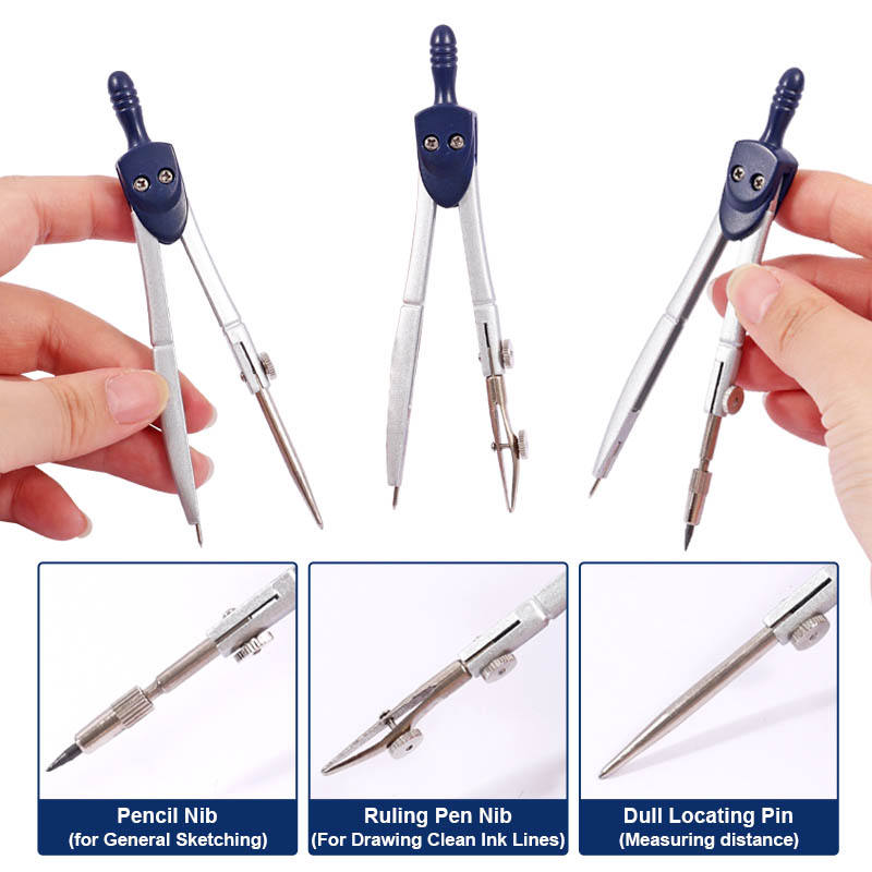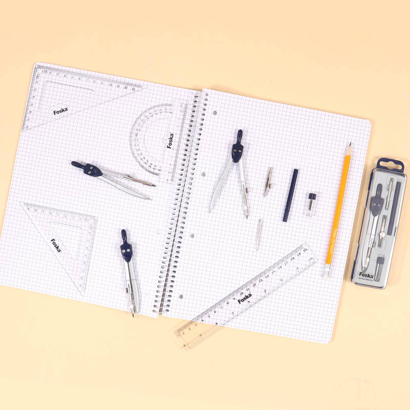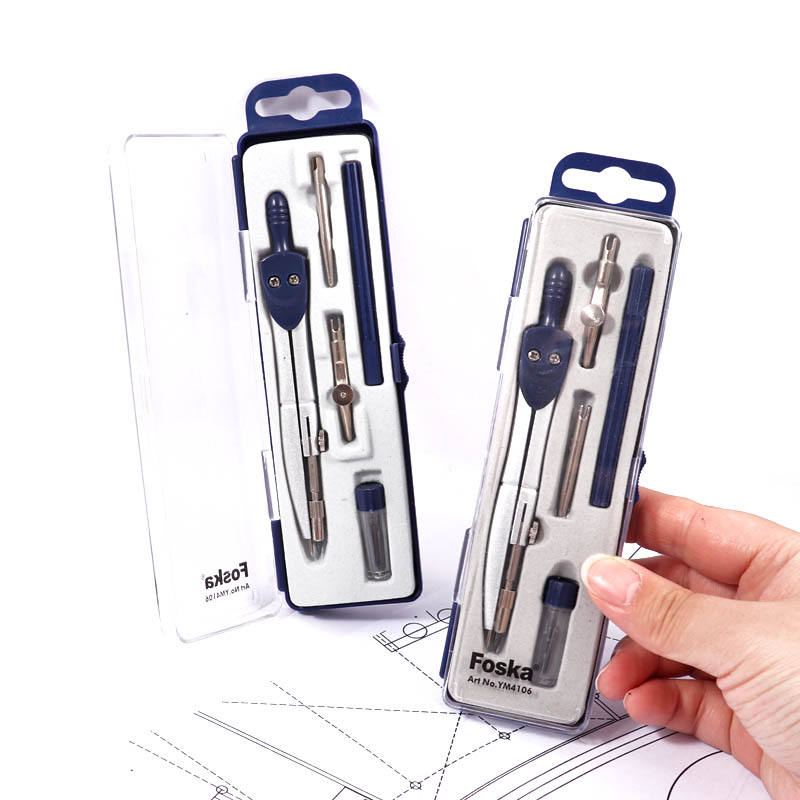 Foska เข็มทิศโรงเรียน5ชิ้นแบบมืออาชีพสำหรับชุดเรขาคณิตพร้อมกล่องเก็บของกันแตก