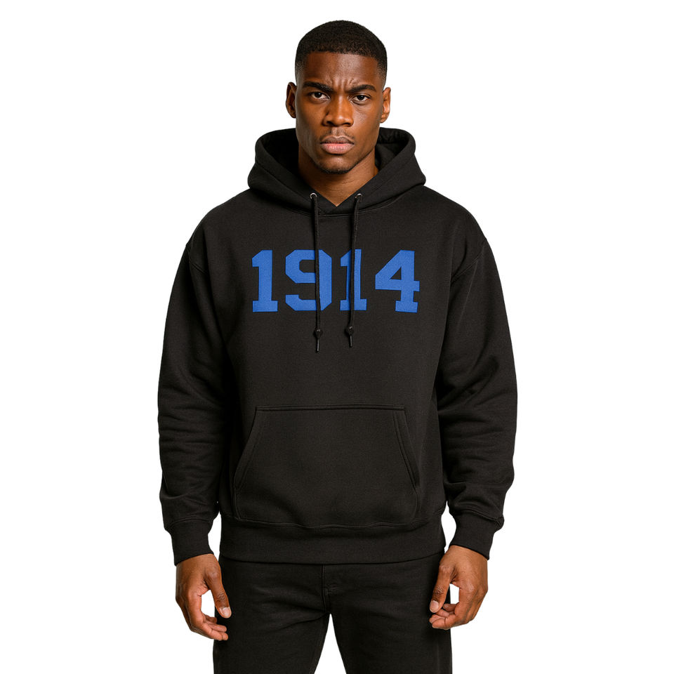 เสื้อฮู้ดสีดำปักลาย Phi Beta Sigma ปีก่อตั้ง 1914 ผลิตจากผ้าฝ้าย สำหรับสมาคมพี่น้องชาวกรีก ปักลาย Divine Nine HBCU ตามสั่ง