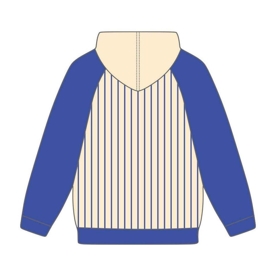 เสื้อฮู้ดพิมพ์ลายทางสีน้ำเงินแบบแร็กแลน ของชมรมนักศึกษาหญิงเซต้า ฟาย เบต้า ปีก่อตั้ง 1920 ชุดเครื่องแบบชมรมนักศึกษาหญิง แบบสั่งทำพิเศษ ดีไวน์ ไนน์